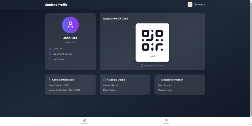 Students generate one-time QR codes that expire after 60 seconds to prevent duplication or abuse. In case of system failure, a manual attendance option is always available to ensure accurate reporting. -