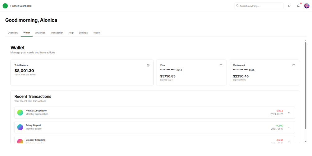 Managing your money shouldn't be complicated. Whether you're handling personal finances, running a business, or balancing multiple accounts, this Finance Dashboard gives you the clarity, control, and confidence to make informed financial decisions—all from one streamlined interface.